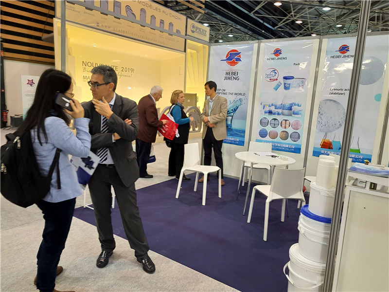 11月13-16日,由我公司宋英健總經理助理帶隊,外貿銷售團隊一行四人參加了在法國里昂Eurexpo展覽中心舉辦的 Piscine 2018國際泳池展會,展會上我公司展示了公司的消毒劑系列產品,通過與客戶的溝通,鞏固了現有合作關系,并發掘了大批潛在客戶,為開拓市場夯實了基礎。