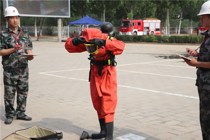 6月27日,在衡水市2019年度危險化學品生產安全事故應急救援演練暨技能比武競賽中,我公司圓滿完成了液氨泄漏事故應急救援演練,同時在全市14支代表隊參加的4個比武項目中,我公司代表隊一舉奪得3個項目的第一名,一個項目的第四名,具體為: 王向陽獲得防化服著裝空呼佩戴項目第一名,曹建強、肖保久獲得止血包扎項目第一名,李亞男獲得蘇生器使用項目第一名,田增祥獲得心肺復蘇項目第四名,在此向各位選手表示祝賀,向各位選手刻苦訓練、不畏強手、沉著比賽展現出的化學精神學習,讓我們共同為進一步加強公司應急管理,實現公司安全穩定生產做出新的貢獻!