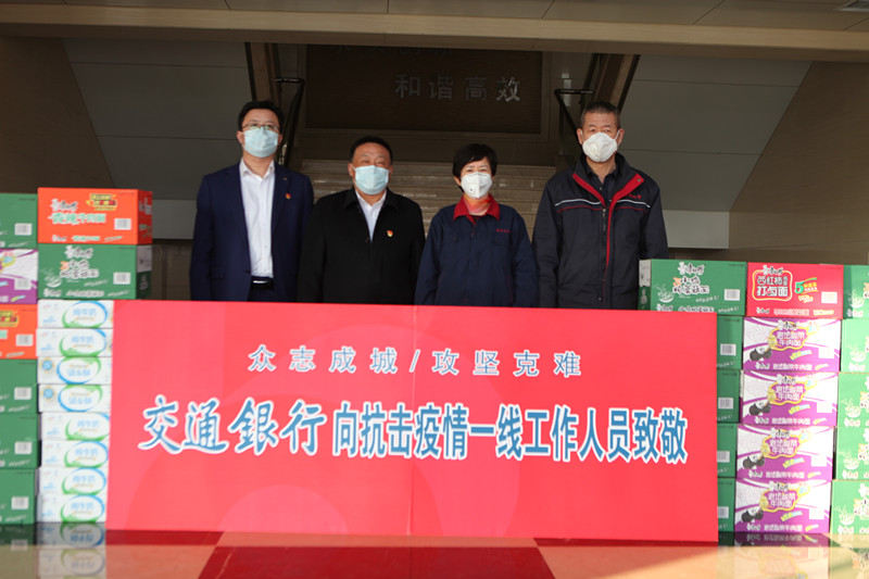2月4日,交通銀行衡水分行彭士杰副行長一行,到我公司慰問消毒產品生產一線員工。對我公司為交通銀行提供的防控支援,彭行長表示衷心的感謝,表示將進一步加強與我公司合作,支持我公司全力做好防控消毒產品生產,共同為衡水市防疫工作作出應有的貢獻!